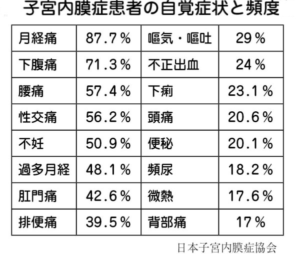 また、子宮内膜症の症状には月経のときの痛み以外に、月経困難症や不正出血、経血量が多い、性交時の痛み、月経時以外の腹痛や腰痛など本当にさまざまあります。またこれが一番やっかいなのですが、まれに不妊症の原因にもなりかねないと言うこともあるようです。